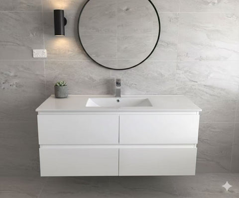 PLYWOOD 1200mm WHITE GLOSS SINGLE BOWL WALL HUNG VANITY