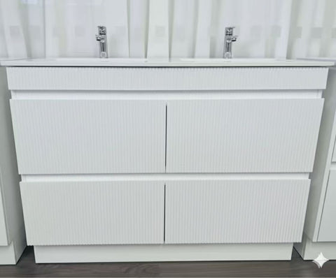 Fluted White 1200 Dbl Bowl Vanity – FLOORSTANDING