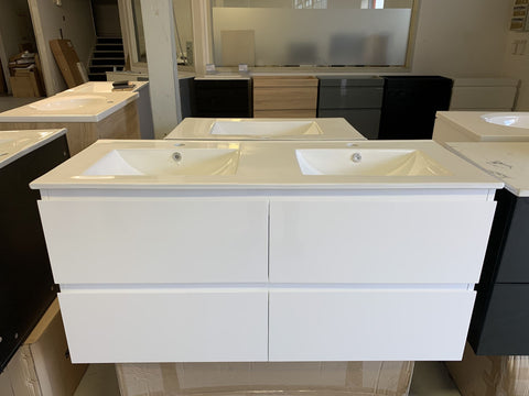 PLYWOOD 1800mm WHITE GLOSS DOUBLE BOWL VANITY